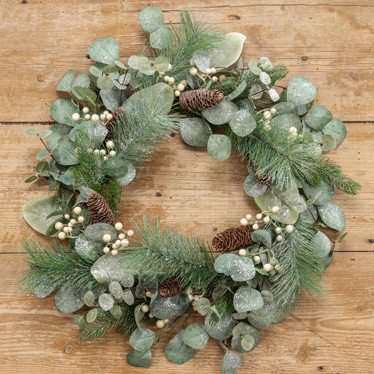 Glittery Pine w/ Eucalyptus, Berries & Cone Christmas Wreath