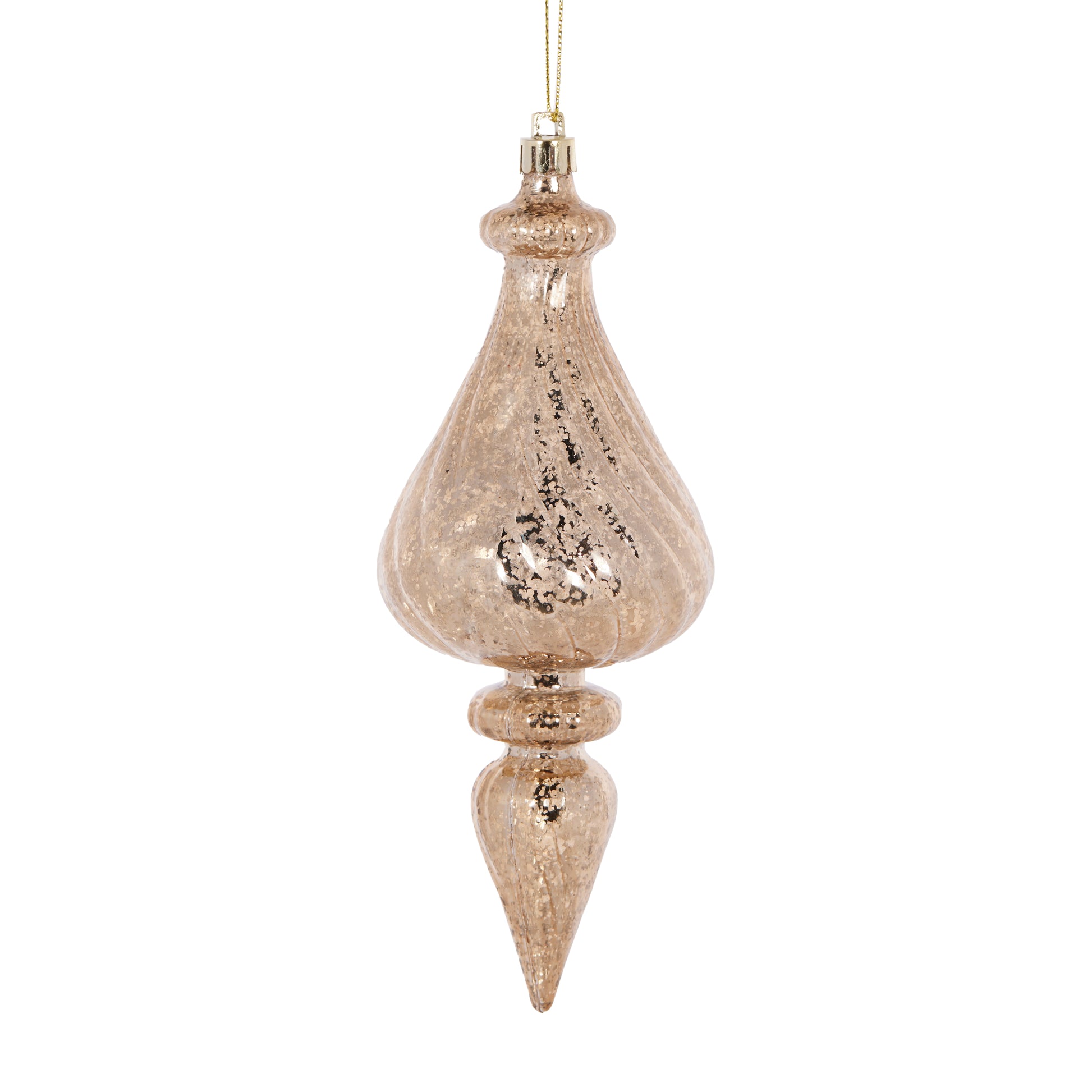 Elevate your holiday decor with our Champagne Mercury Bulb Finial Ornament, a vintage-inspired treasure that adds a touch of timeless elegance to your Christmas tree. This bulb ornament, featuring a mercury glass finish in a rich champagne hue, brings a sense of glamour and sophistication to your Christmas tree.