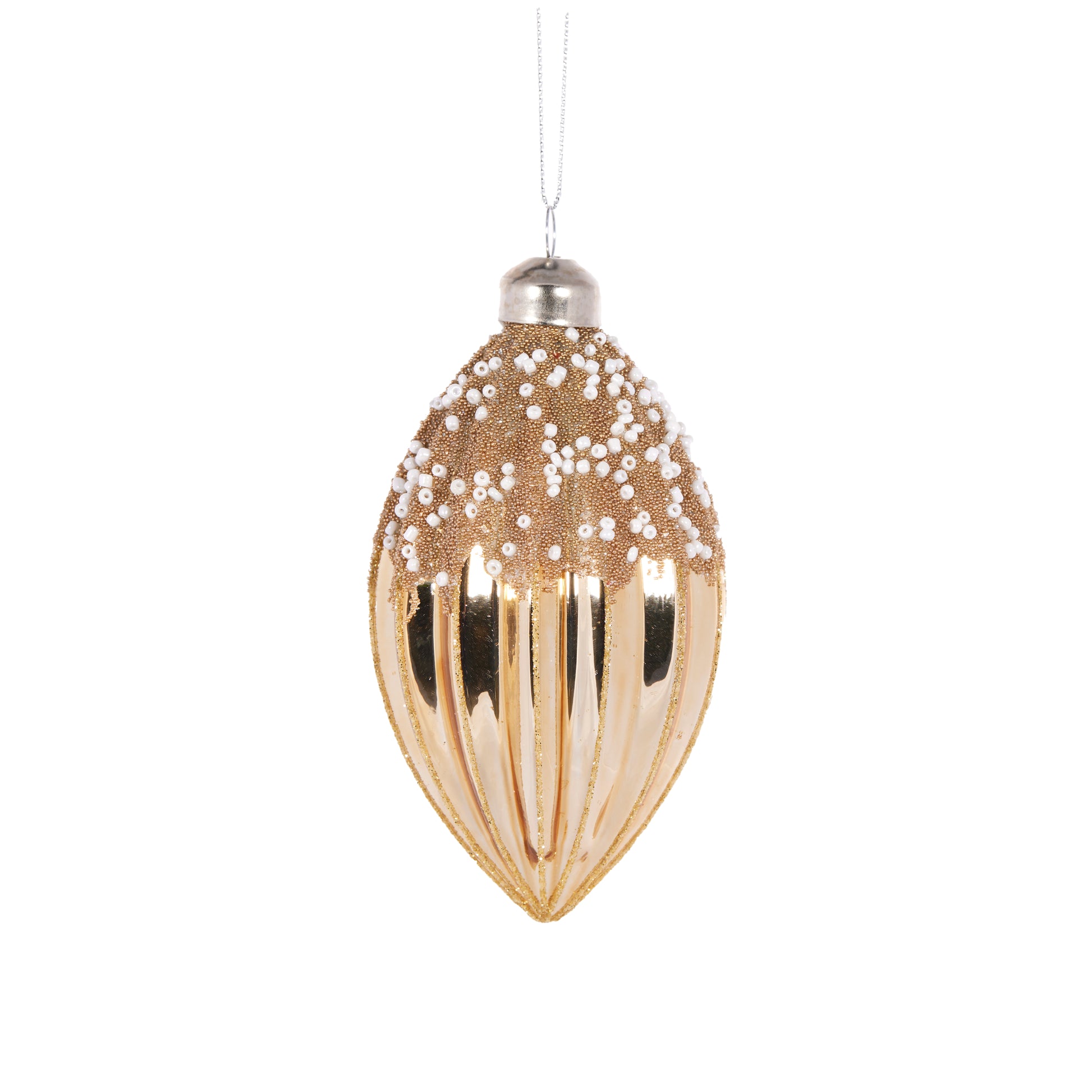 Elevate your festive decor with the luxurious charm of our Gold Beaded Drop Bauble. This exquisite ornament brings a touch of opulence and sophistication to your Christmas tree or holiday display, making it a standout piece in your seasonal decor collection.