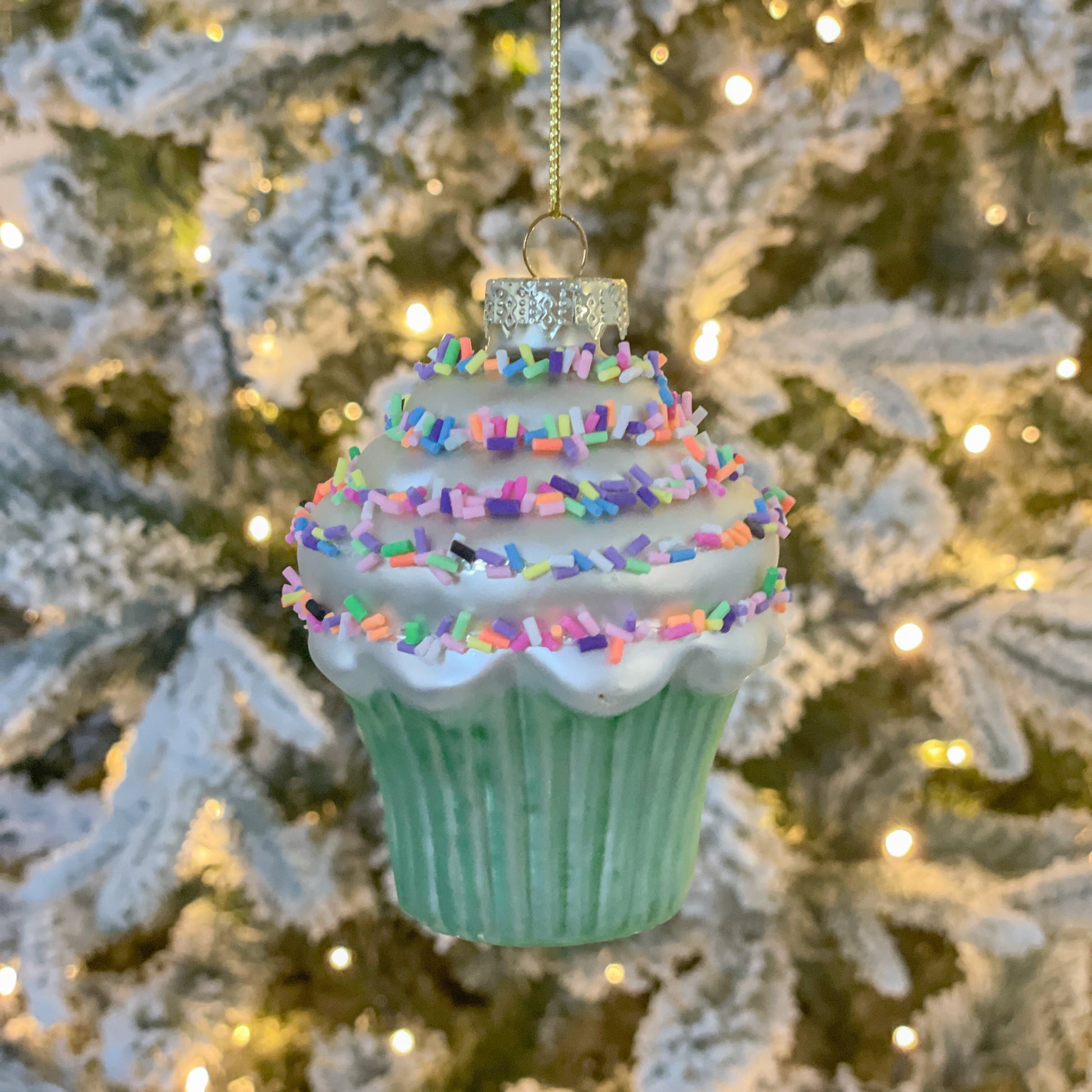 Add a touch of sweetness to your holiday decor with our charming Green Sprinkle Cupcake Ornament! This whimsical ornament features a beautifully crafted cupcake design adorned with colourful pastel sprinkles, making it the perfect accent for your Christmas tree or festive displays.