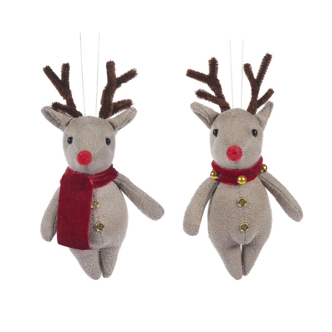 This ornament captures the whimsical charm of one of Santa's trusty reindeer, adding a touch of enchantment to your Christmas tree. Made with care and adorned with charming details, it brings a warm and inviting ambiance to your festivities. Hang it with pride and celebrate the season with our Fabric Reindeer Ornament, a perfect choice for a touch of holiday magic and wonder.