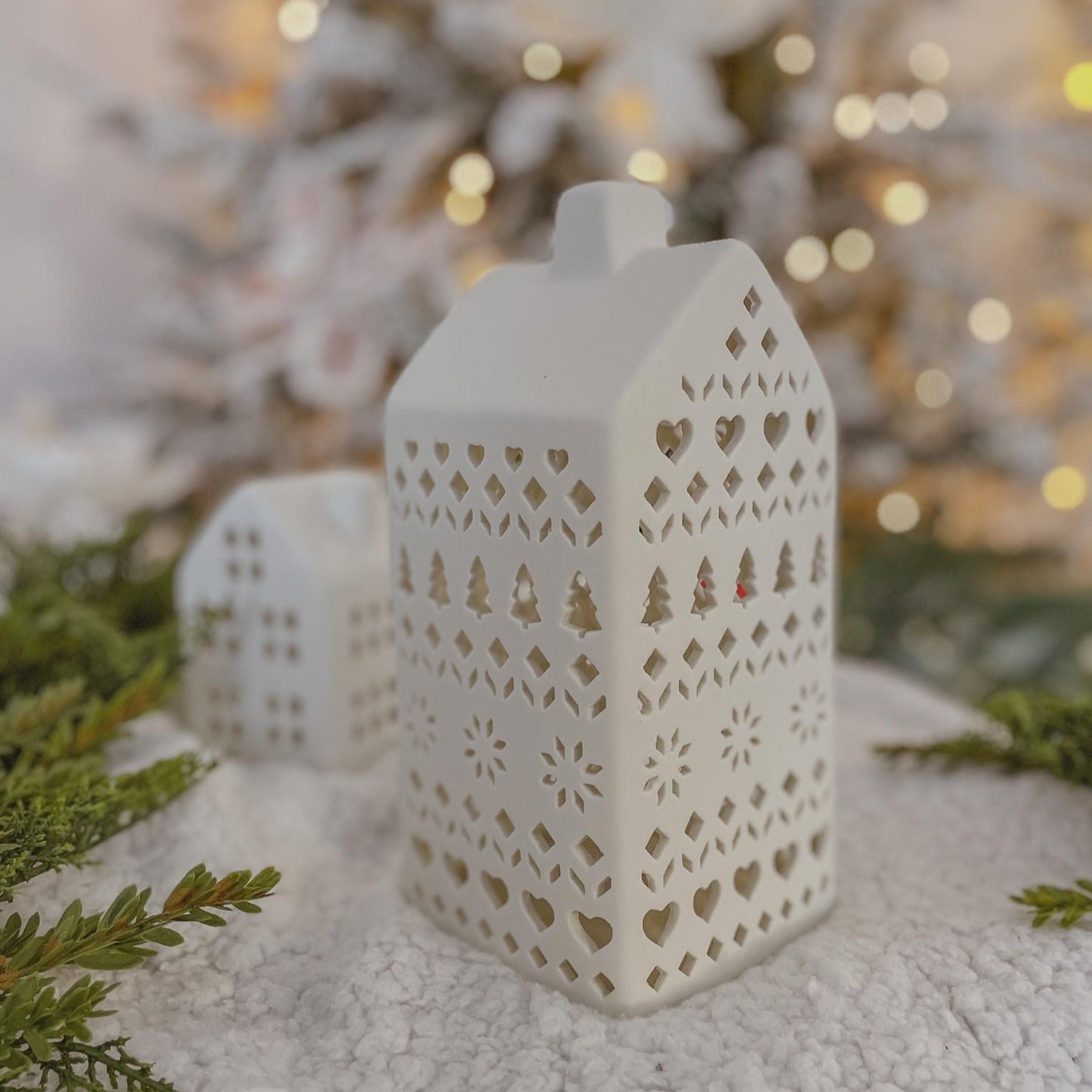 Large White Porcelain Festive House