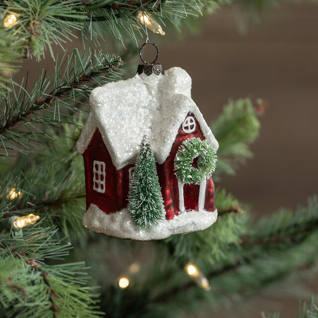 Elevate your holiday decor with our exquisite Red Antique Mercury Glass House Ornament. Crafted with meticulous attention to detail, this charming ornament is a timeless addition to your festive collection. The ornament's red mercury glass finish exudes an antique charm, giving your Christmas decor a touch of vintage elegance.