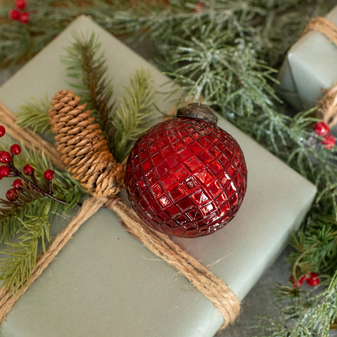 Enhance your holiday decor with our Red Waffle Kugel Ornament, a delightful addition to your Christmas tree that combines classic charm with a touch of playful texture. It's a small detail that will make a big impact on your Christmas tree.