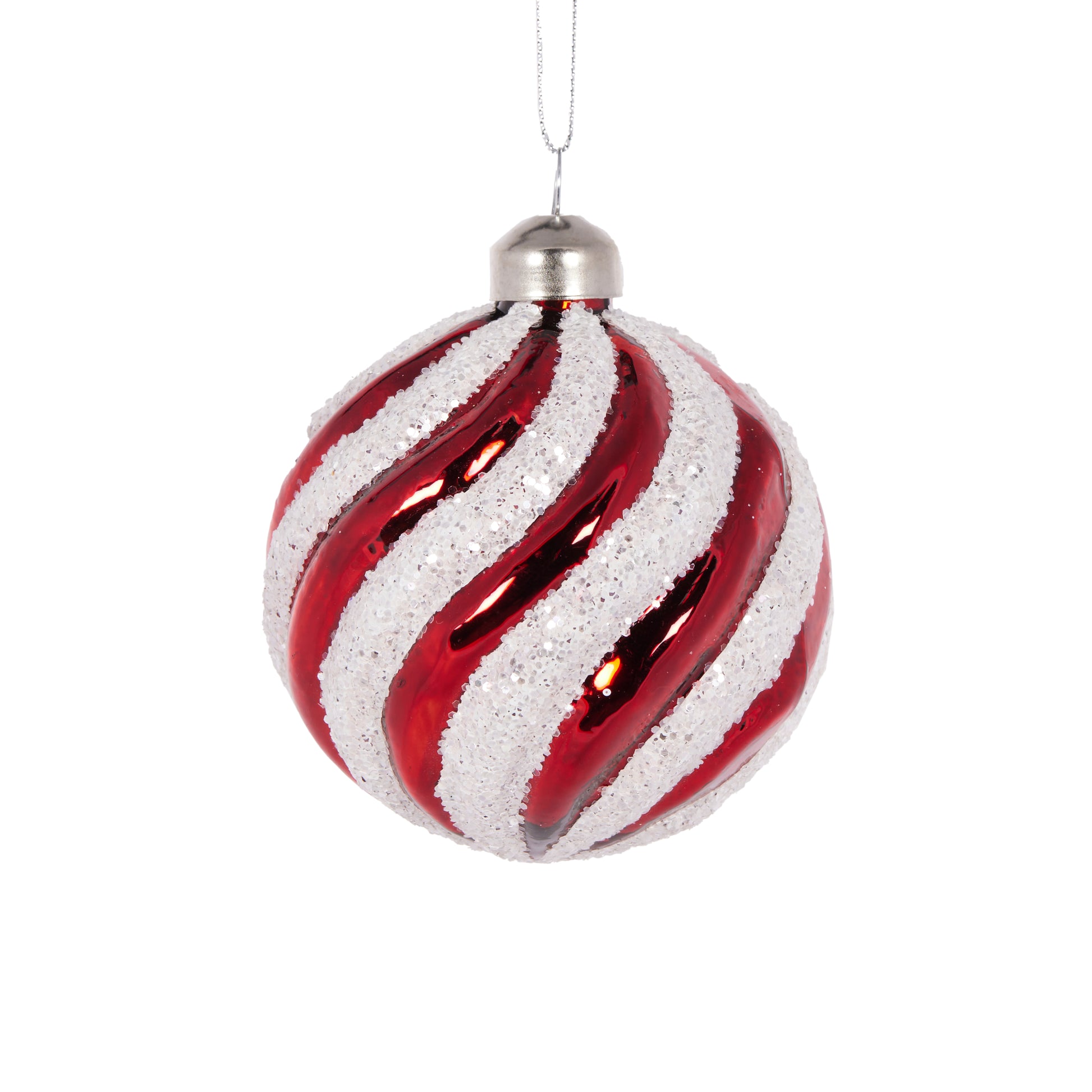 Red & White Glitter Peppermint Swirl Bauble