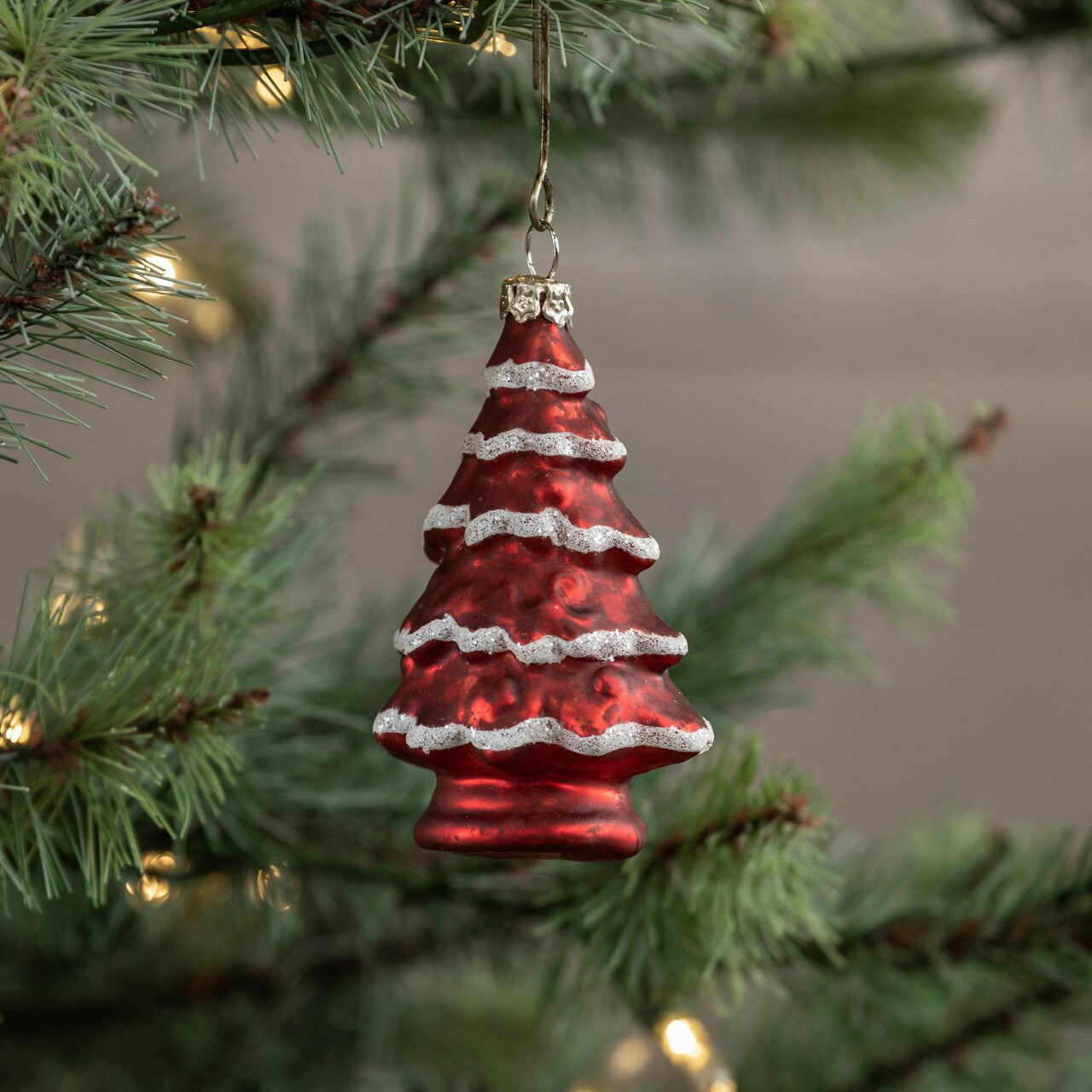 Elevate your holiday decor with our Snowy Red Christmas Tree Ornament, a captivating and elegant addition that adds a touch of festive charm to your Christmas tree. This exquisite ornament is adorned with a delicate snowy finish, creating a magical wintery scene right on your tree.