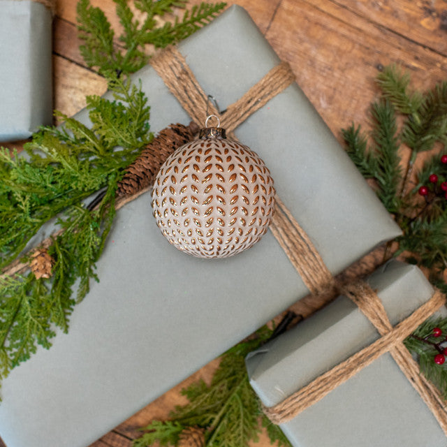 Enhance your festive décor with our Taupe & Gold Braided Ornament. Featuring an intricate braided design with warm taupe tones and subtle gold accents, this bauble brings texture, elegance, and a touch of luxury to your Christmas tree.
