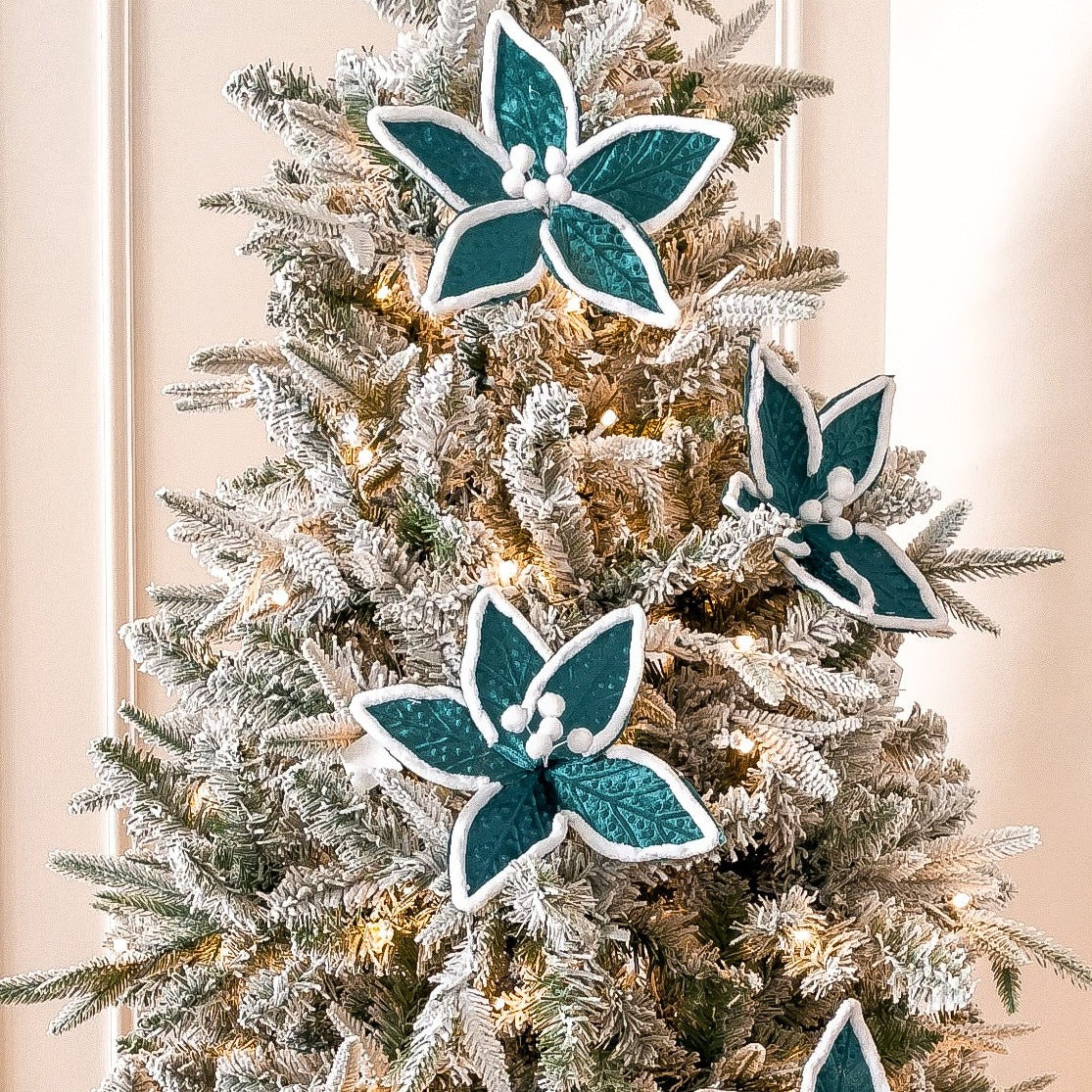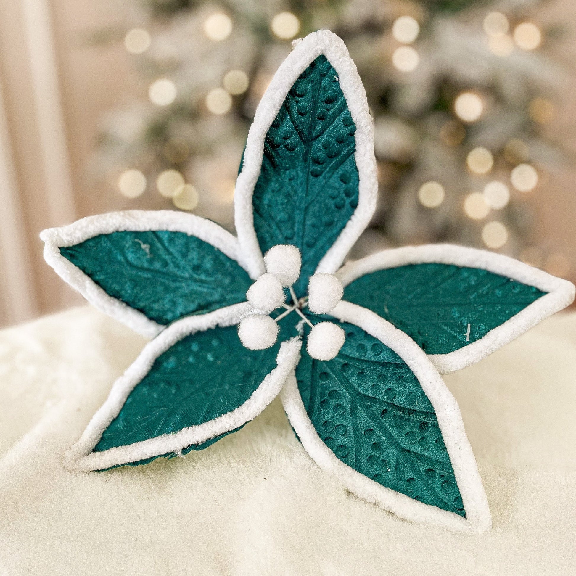 Elevate your festive décor with our Velvet Green Poinsettia, a luxurious take on a Christmas classic. Crafted from rich velvet fabric with lifelike detail, this elegant bloom adds depth, texture, and sophistication to any holiday display. Perfect for styling in Christmas trees, wreaths, garlands, or centrepieces, the deep green tones pair beautifully with golds, silvers, and traditional reds for a refined seasonal look.
