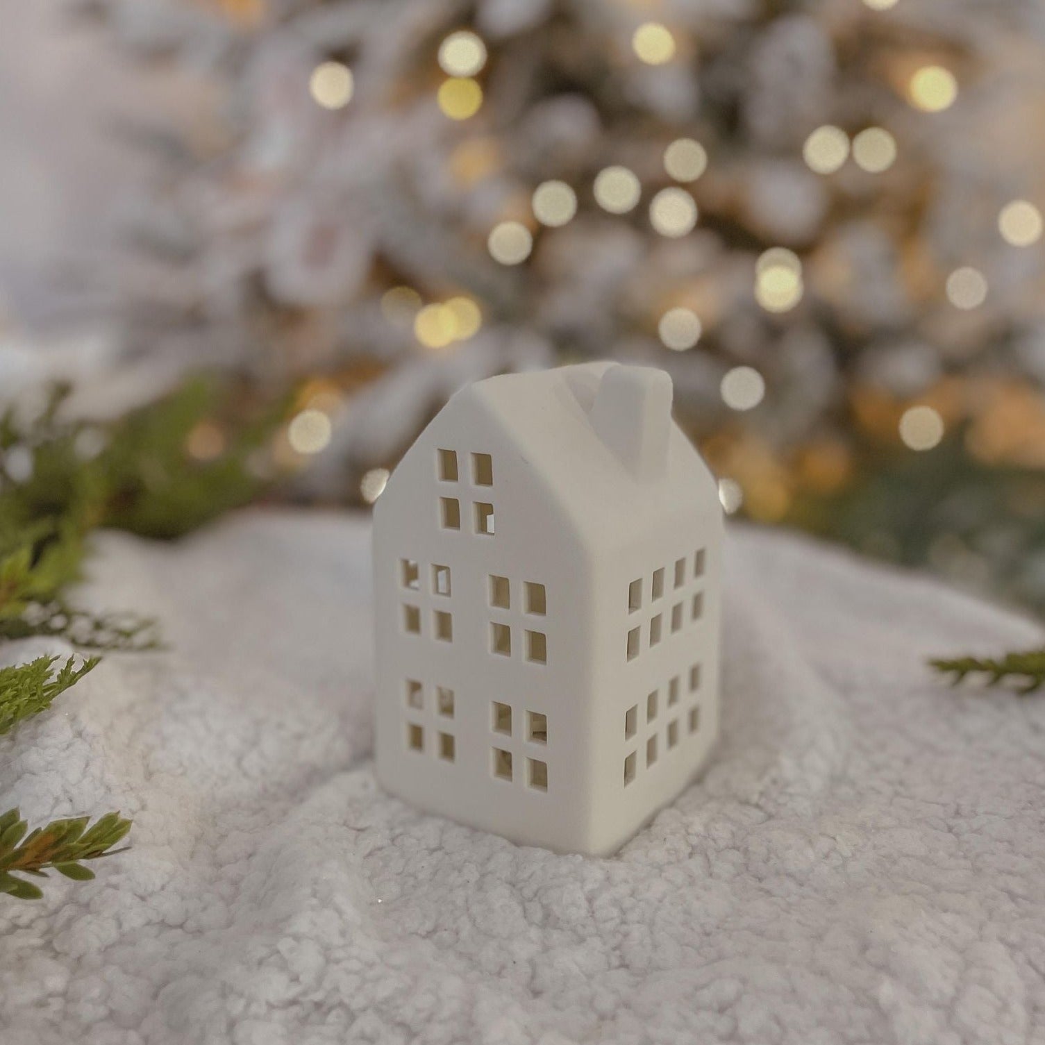 This charming porcelain house captures the essence of holiday warmth and coziness. With its intricate details and pure white finish, it adds a touch of elegance and timeless beauty to your home. Place our White Porcelain Festive House as a centrepiece on your mantel, side table, or as part of your Christmas village display to create a heartwarming and inviting holiday atmosphere.