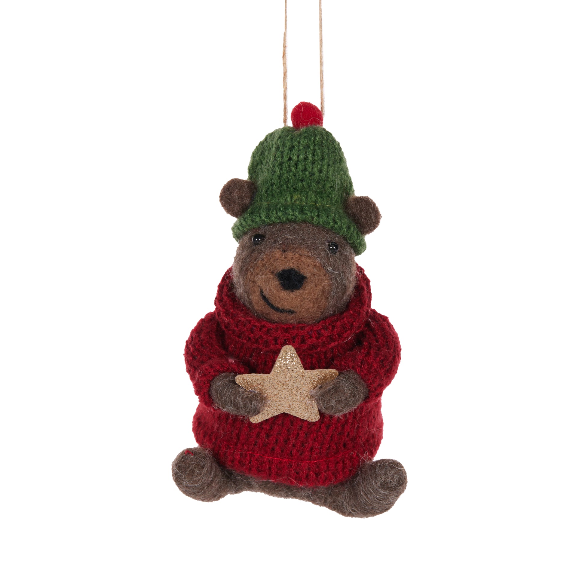 Celebrate the warmth and charm of the holiday season with our adorable Wool Bear with Beanie Christmas Ornament. This delightful ornament combines the coziness of wool with the whimsy of a bear in a festive beanie, making it a perfect addition to infuse your Christmas tree with a touch of winter comfort and holiday cheer.